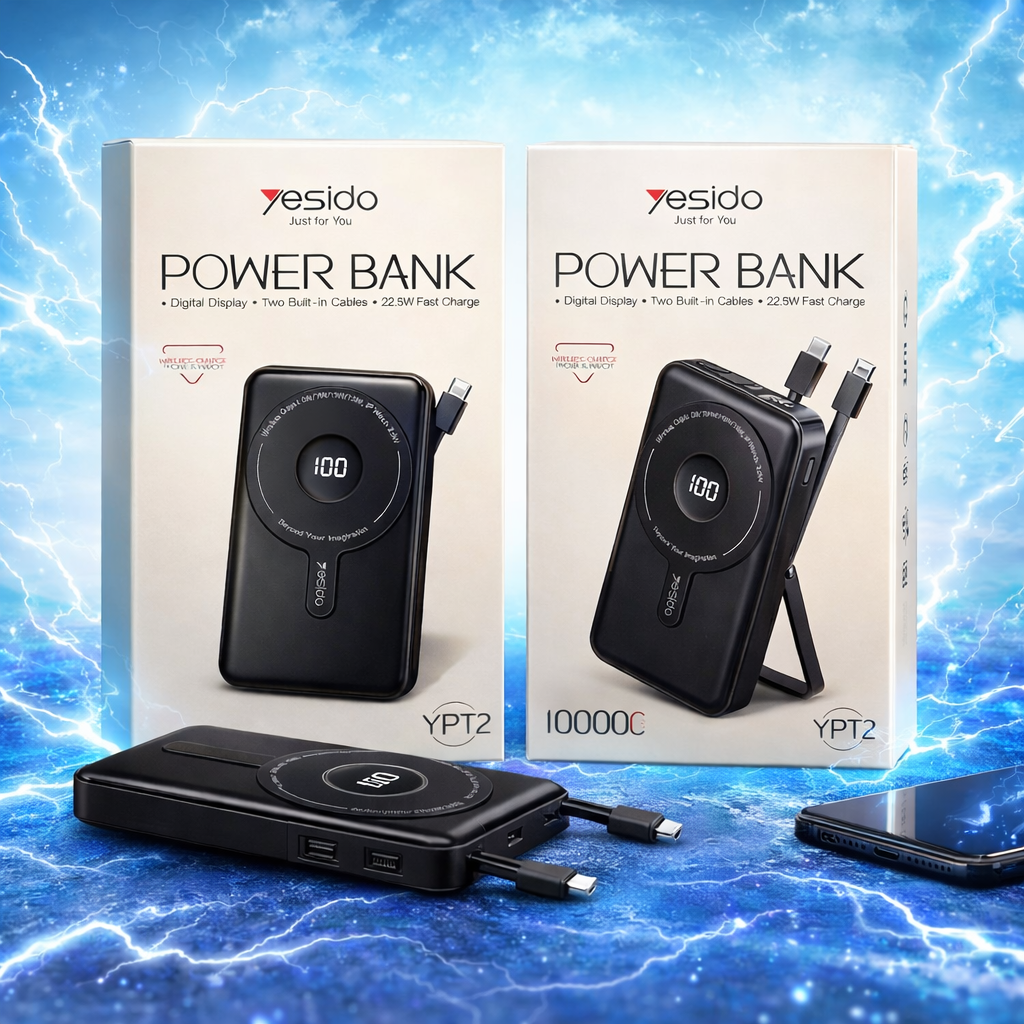 Yesido Wireless Power Bank with Built-in Cables